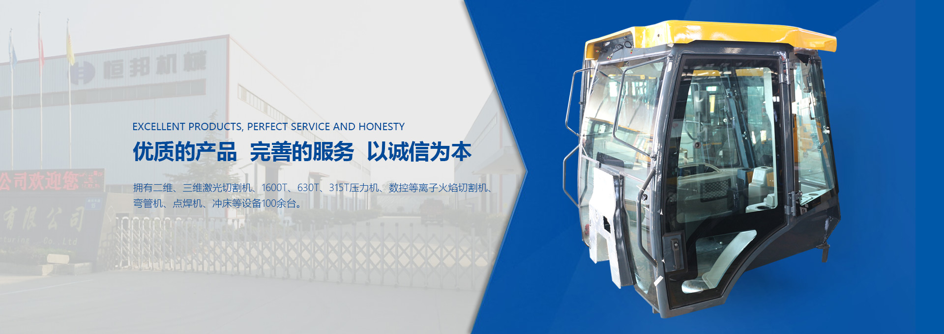 揚州市恒邦機械制造有限公司位于風景秀麗的揚州市江都區(qū)丁伙工業(yè)園區(qū)。瀕臨長江,緊靠京滬高速、啟揚高速,地理條件優(yōu)越,交通營運便利。我公司集多年模具開發(fā)和鈑金制造經驗,自2009年起,專注生產工程機械駕駛室、配重塊、覆蓋件和特種駕駛室。研發(fā)設計技術人員30名,員工300名。現代化生產車間20000平米。...